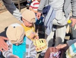 À notre arrivée, quelle surprise ! Photos à l’appui 📸, nous avons découvert une myriade de petites fritures en chocolat — œufs, lapins, poules, noir et au lait — dispersées comme par magie autour de notre arbre à œufs imaginé par nos résidents. 🌳🍫