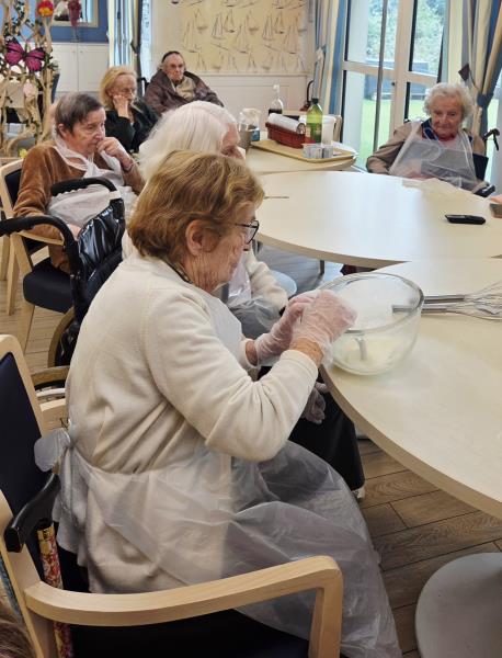 L’après-midi, place à la pâtisserie ! Nos résidents ont confectionné de délicieux gâteaux avant de passer, bien sûr, à la dégustation… avec un peu de chocolat fondu pour les plus gourmands. Un moment simple et chaleureux comme on les aime.