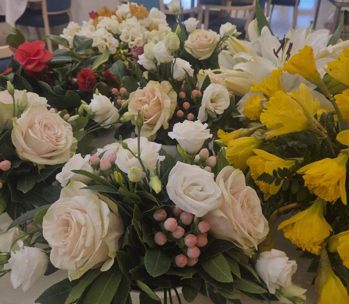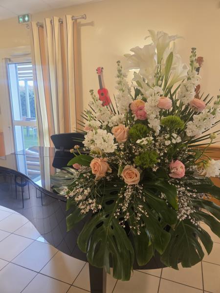 En fin de matinée, une activité inattendue est venue illuminer la journée. Le petit-fils de l’une de nos résidentes s’est marié ce week-end et a offert aux résidents les magnifiques centres de table et compositions florales de la réception.