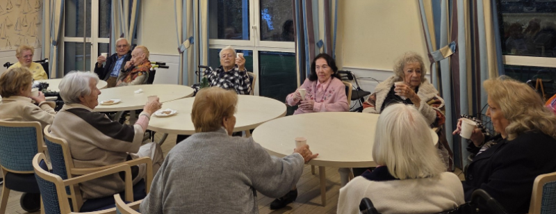 Préparé spécialement pour l’occasion par nos cuisiniers, le vin chaud a délicieusement accompagné nos résidents et leurs proches. Entre deux gorgées parfumées, les discussions allaient bon train : conseils d’artistes en herbe, discussions animées, entraide spontanée… Chacun a apporté sa touche personnelle, et c’est cette diversité qui fait la beauté de nos créations.