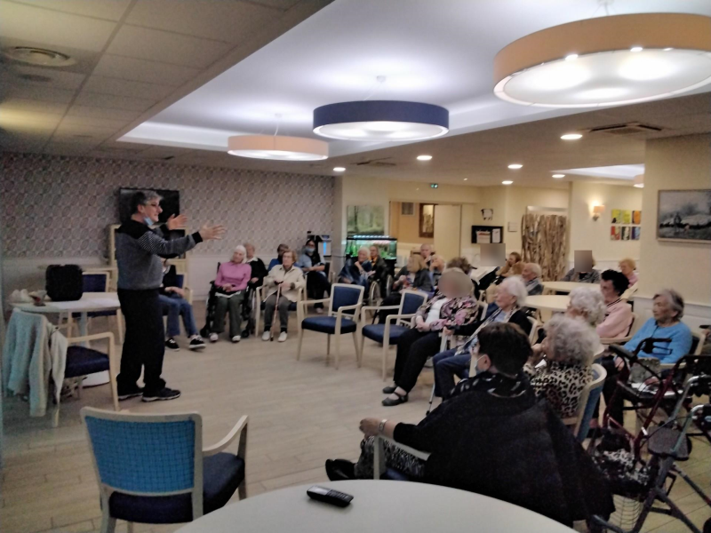 Grâce à des ateliers d’improvisation, de gestuelle et d’interprétation, il a su montrer que chaque résident et chaque membre de l’équipe possédait un véritable talent d’acteur ou de conteur.