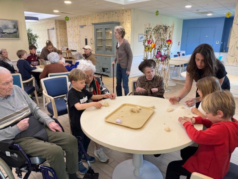 Les activités se poursuivent avec des ateliers créatifs où petits et grands deviennent artistes : pâte à sel, créations de fleurs, de plantes ou d’animaux… chacun participe, souvent à plusieurs mains, dans une ambiance joyeuse et pleine de complicité.