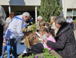 Résidents et enfants des écoles de Saint-Clair et des Grandes Plages se retrouvent autour d’ateliers de plantation. Ensemble, ils partagent leurs connaissances et mettent en terre plantes méditerranéennes et fleurs de saison dans des pots et bacs colorés, installés sous les mûriers platanes, futurs parasols naturels des beaux jours.