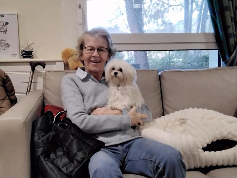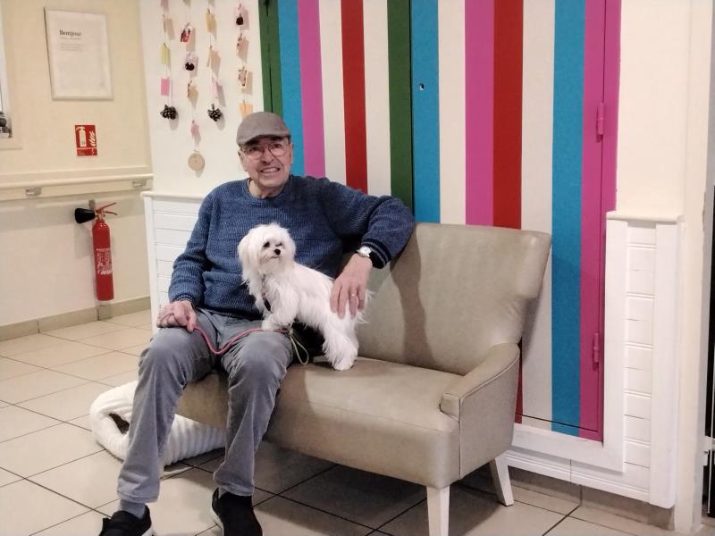 Et parce que ces moments avec les animaux se prolongent au quotidien, nous avons régulièrement la présence de Avril, la petite chienne de Christine notre chargée d'accueil, qui reste avec nous dans la journée. Sa douceur et sa présence apportent beaucoup de réconfort et de sourires.