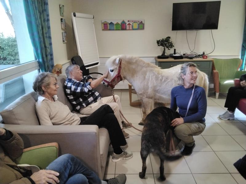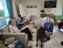 🐴 🐰 De tendres moments avec nos amis les animaux : Les séances de médiations animales ont une nouvelle fois apporté beaucoup d'émotion et de joie. Les lapins, la ponette Bellina et le chien NINO ont été accueillis avec curiosité et tendresse. Chacun a pu profiter d'un contact privilégié, riche en sensations et en émotions.
