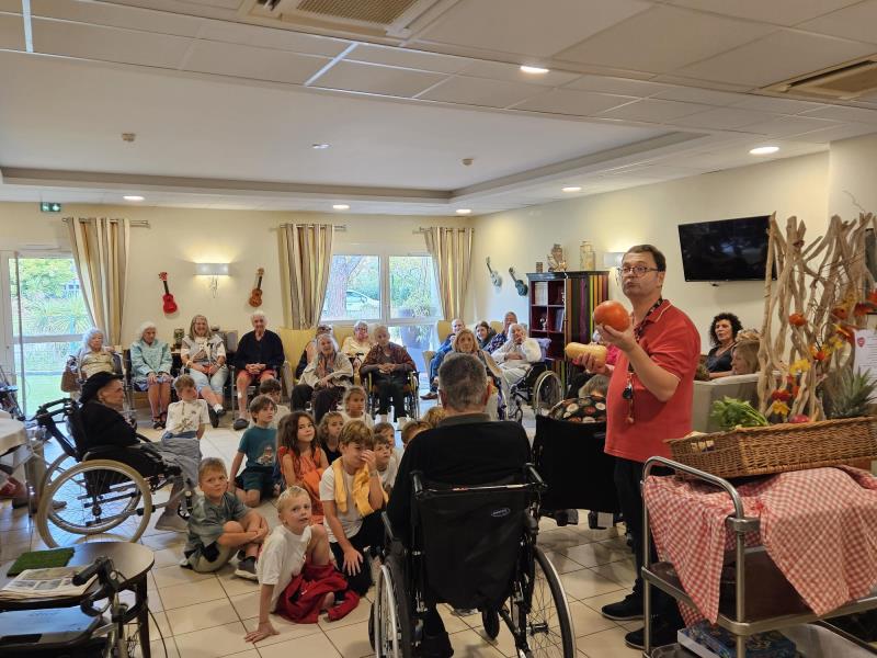 Ensemble, enfants, résidents et enseignants ont partagé souvenirs, recettes et savoirs lors d’ateliers sur le goût, dans une ambiance joyeusement intergénérationnelle. 🍏👧👵