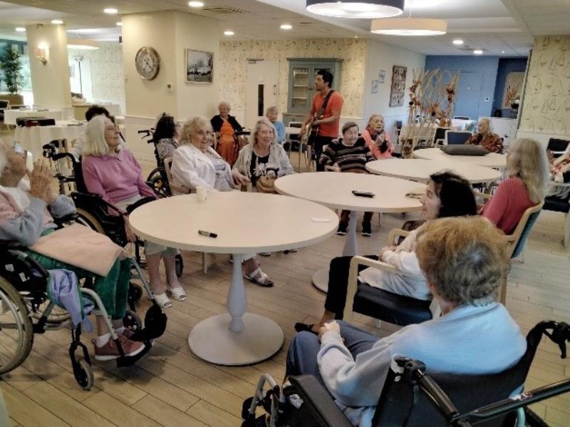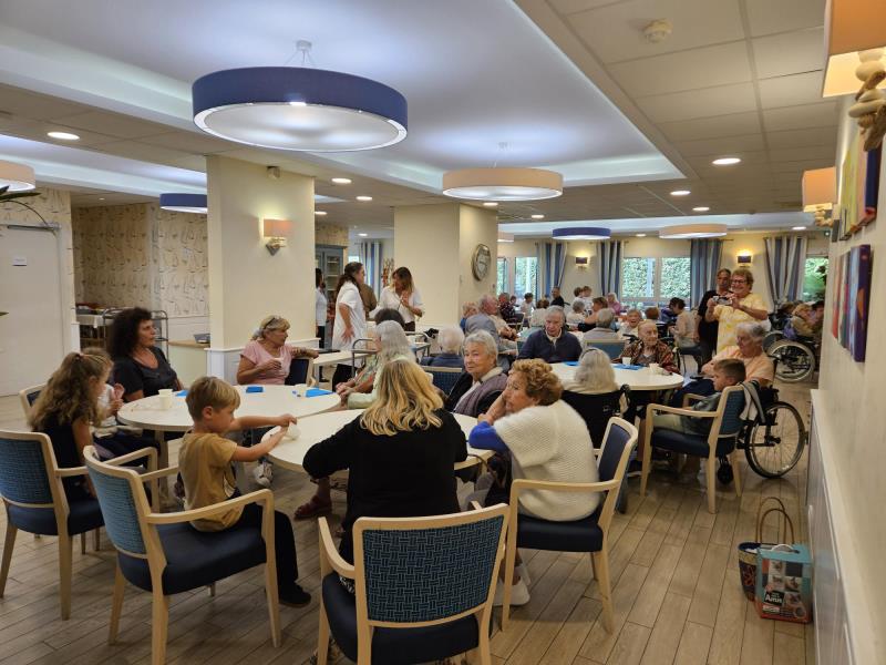 Nos résidents, rejoints par ceux du foyer Nostré Fougaou, ont uni leurs voix pour un moment musical et chanté a cappella autour de "desserts bleutés et verre de l'amitié ".